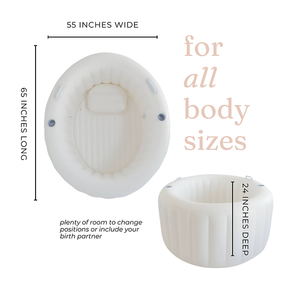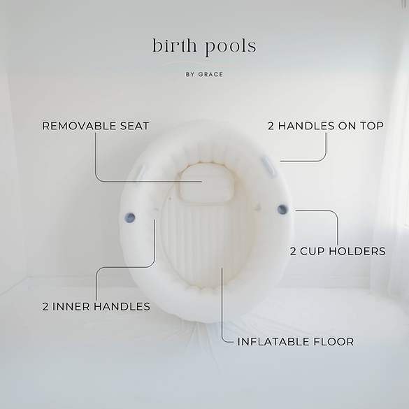 We offer the Ivory White Pool made by Birth Pools by Grace — a Canadian woman/doula-owned company, professional-grade birth pool designed with both comfort and safety in mind. Its soft sides and deep interior provide room to move, while the included single-use liner ensures hygiene.